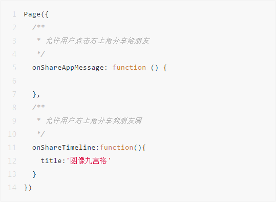滿足條件 1 后,頁面需設(shè)置允許“分享到朋友圈”,同時可自定義標(biāo)題、分享圖等。