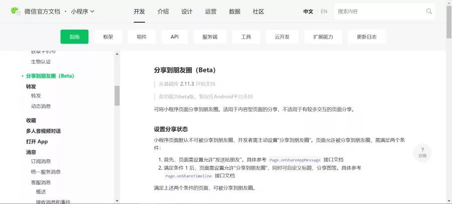 官方文檔鏈接:https://developers.weixin.qq.com/miniprogram/dev/framework/open-ability/share-timeline.html。